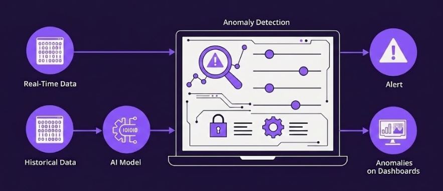 Once it's got that baseline down, it can spot when something's off, even the subtle irregularities that traditional methods would probably miss. These anomalies could mean you've got fraud going on, systems failing, security breaches, or technical glitches. But they can also reveal opportunities to improve processes or optimize performance.